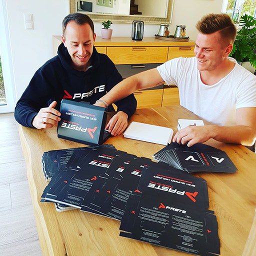 As if by chance, they came up with the topic of shin guards. The fact that they always slip has long been a thorn in their side. Pascal, who has been working with silicone for years and has already accompanied several product launches, voices the idea behind PASTE® for the first time that evening.